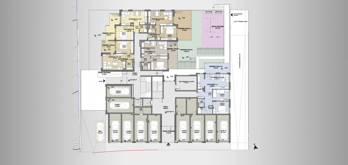 МНОГОФАМИЛНА ЖИЛИЩНА СГРАДА ОТ ЗАТВОРЕН ТИП С ГАРАЖИ И ПОДЗЕМЕН ПАРКИНГ.