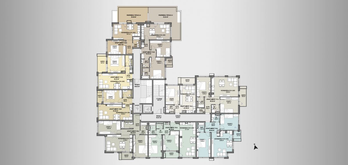 | Апартамент 21.Б | 2 | Пети | 2 | запад | 55.48 | 66.07 | продадено | |||