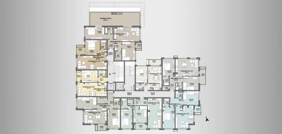 | Апартамент 22.А | 1 | Пети | 3 | изток | 90.24 | 107.46 | продадено | |||