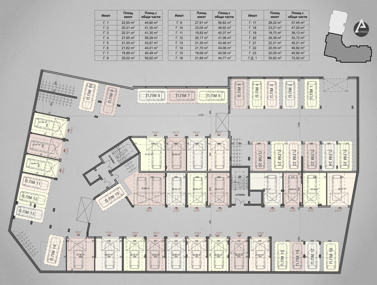 | Подз. гараж 1 | - | Сутерен | - | 22.5 | продаден | |||||