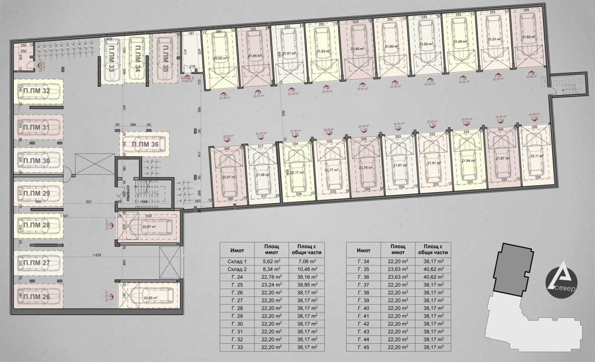 | Паркомясто 22 | - | Сутерен | - | 0 | продаден | |||||
